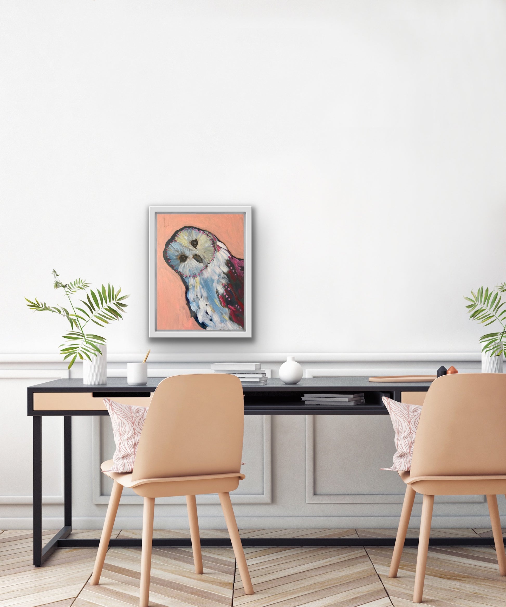 Original owl artwork. Willow is a therapy barn owl, located in the UK. Her sweet personality inspired this work.